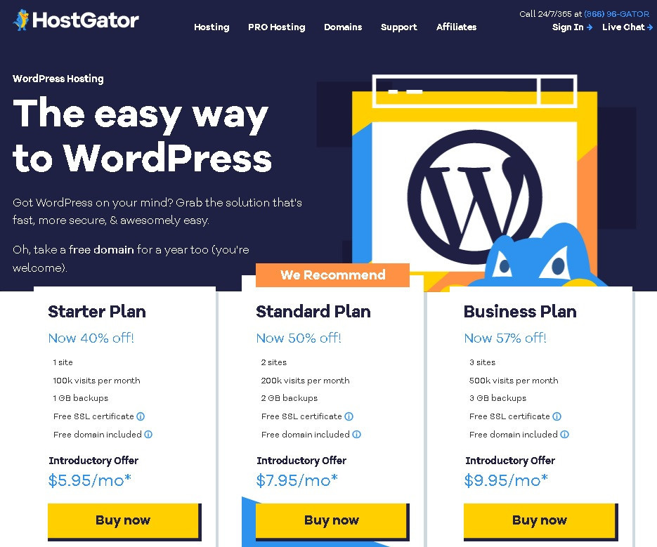 With their 99.9% uptime guarantee, good page loading time, free domain registration, free SSL certificates, free transfer service and easy to use control panels, it is worth your while to buy hosting with HostGator.